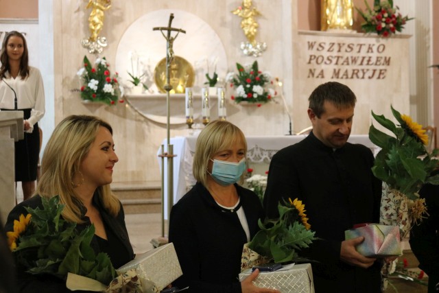 O godz 8:30 w kościele Matki Bożej Łaskawej zgromadziła się młodzież klas pierwszych, dyrekcja, nauczyciele oraz zaproszeni goście – Pan Paweł Faryna - Starosta Powiatu Jędrzejowskiego, Pani Maria Barańska – Wicestarosta Powiatu Jędrzejowskiego, Pan Marek Mendel – Przewodniczący Rady Powiatu, Pani Iwona Nowak – Kierownik Oddziału Zamiejscowego Kuratorium Jędrzejów, Pani Renata Kawiorska – Członek Zarządu Powiatu Jędrzejowskiego, Pani Renata Kwas – Naczelnik Wydziału Edukacji i Spraw Społecznych Starostwa Powiatowego, Pan Paweł Jakubowski – Zastępca Komendanta Powiatowej Państwowej Straży Pożarnej w Jędrzejowie, Pan Tomasz Sołtysik – Komendant Powiatowy Policji w Jędrzejowie oraz dyrektorzy zaprzyjaźnionych szkół ponadpodstawowych: Agnieszka Zaczkowska, Iwona Lechowicz i Paweł Kowalski.