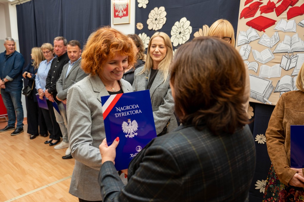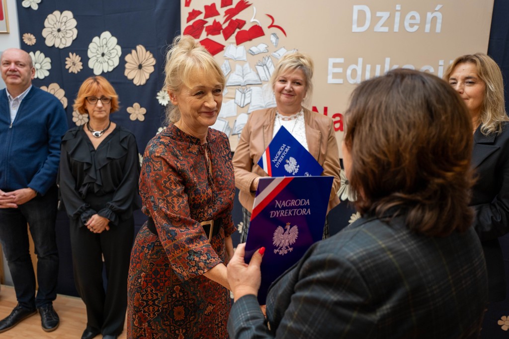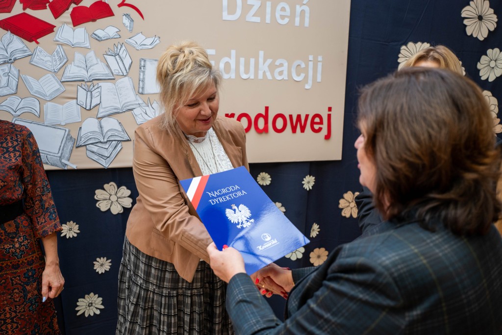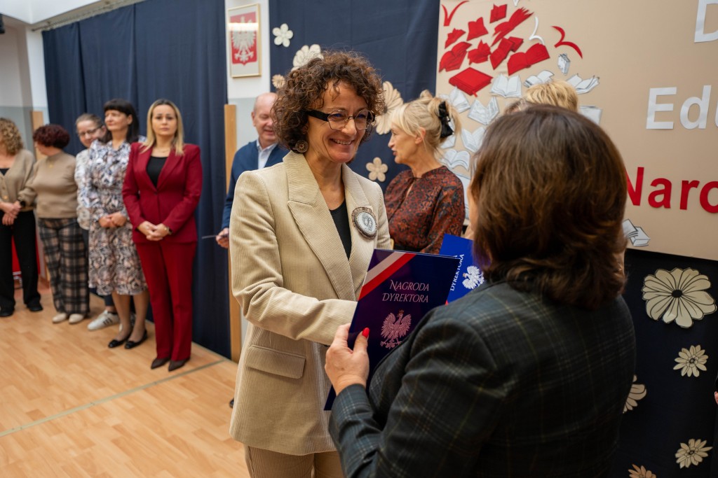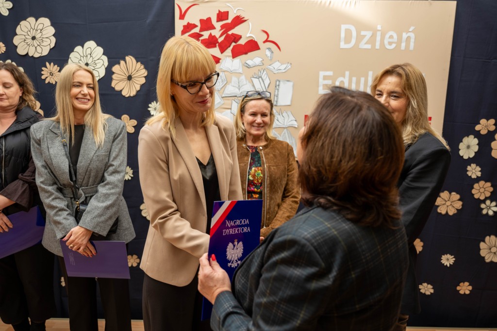 Podczas uroczystości Pani Dyrektor Małgorzata Wojtasik wręczyła nagrody nauczycielom oraz pracownikom administracji i obsługi, dziękując im za zaangażowanie, trud, pasję, cierpliwość oraz codzienną pracę na rzecz uczniów i całej społeczności szkolnej. Życzenia dla nauczycieli złożyli również przedstawiciele Rady Rodziców.