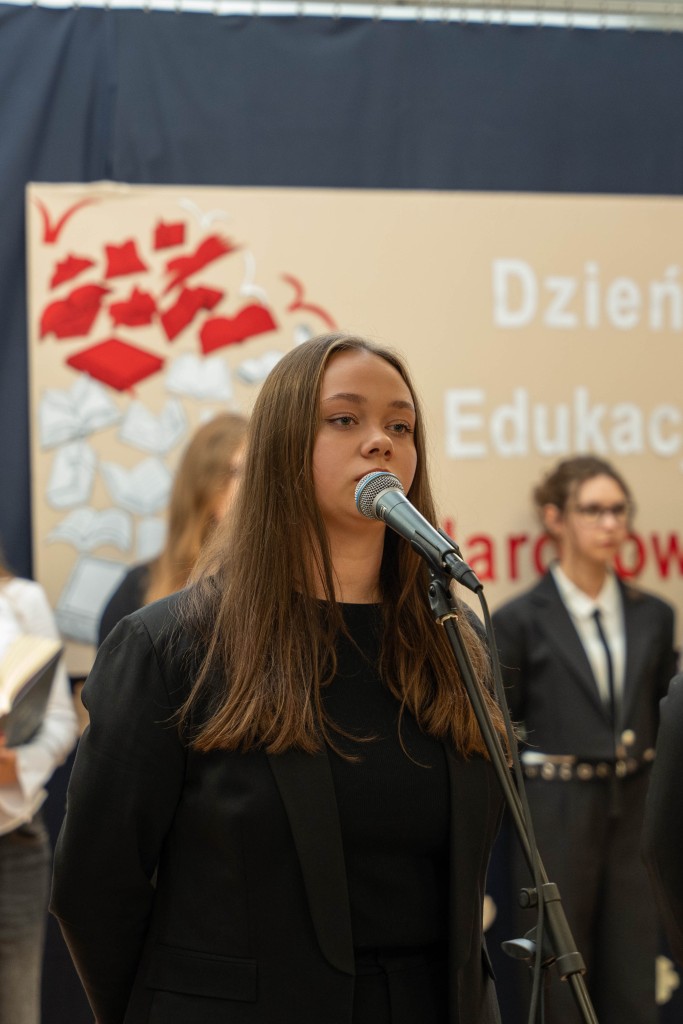 Z tej okazji uczniowie przygotowali montaż słowno-muzyczny pt. „Mój Nauczyciel – Mój Mistrz”, będący wyrazem wdzięczności i szacunku wobec pedagogów. Występ młodzieży, pełen wzruszeń i refleksji nad znaczeniem pracy nauczyciela w życiu każdego ucznia, przypomniał wszystkim, jak ogromny wpływ na kształtowanie młodego człowieka ma nauczyciel – przewodnik, mistrz i autorytet. Mottem akademii stały się słowa: "Wszystko, co wielkie, jest wielkie przez serce."[Cyprian Kamil Norwid]
