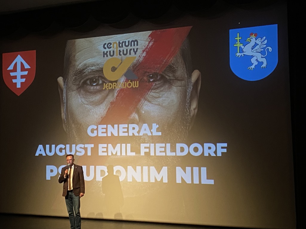 Jako historyk przybliżył młodzieży postać jednego z „niezłomnych” podkreślając jego wyjątkowość. Opowiedział o Jego działalności, powojennym prześladowaniu przez komunistów, aresztowaniu, a w końcu groteskowym procesie i egzekucji generała. W dniu dzisiejszym /24 lutego br. /przypada 73 rocznica wyroku, jaki wykonano na wielkim bohaterze. Generał Nil stał się ofiarą komunistycznego terroru i niesprawiedliwości, zaś ci, którzy Go skazali uciekli i nigdy nie zostali rozliczeni z tego haniebnego czynu. W sali kinowej Centrum Kultury zapanowała cisza…
