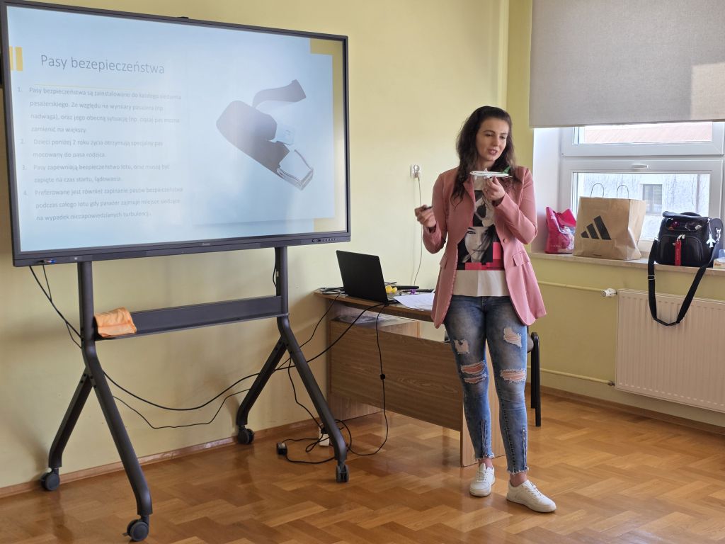 Uczniowie klas technik hotelarstwa uczestniczyli w dwudniowym szkoleniu Cabin Crew, które prowadziła pani Mariola Bator z Branżowego Centrum Umiejętności "SkyPort".