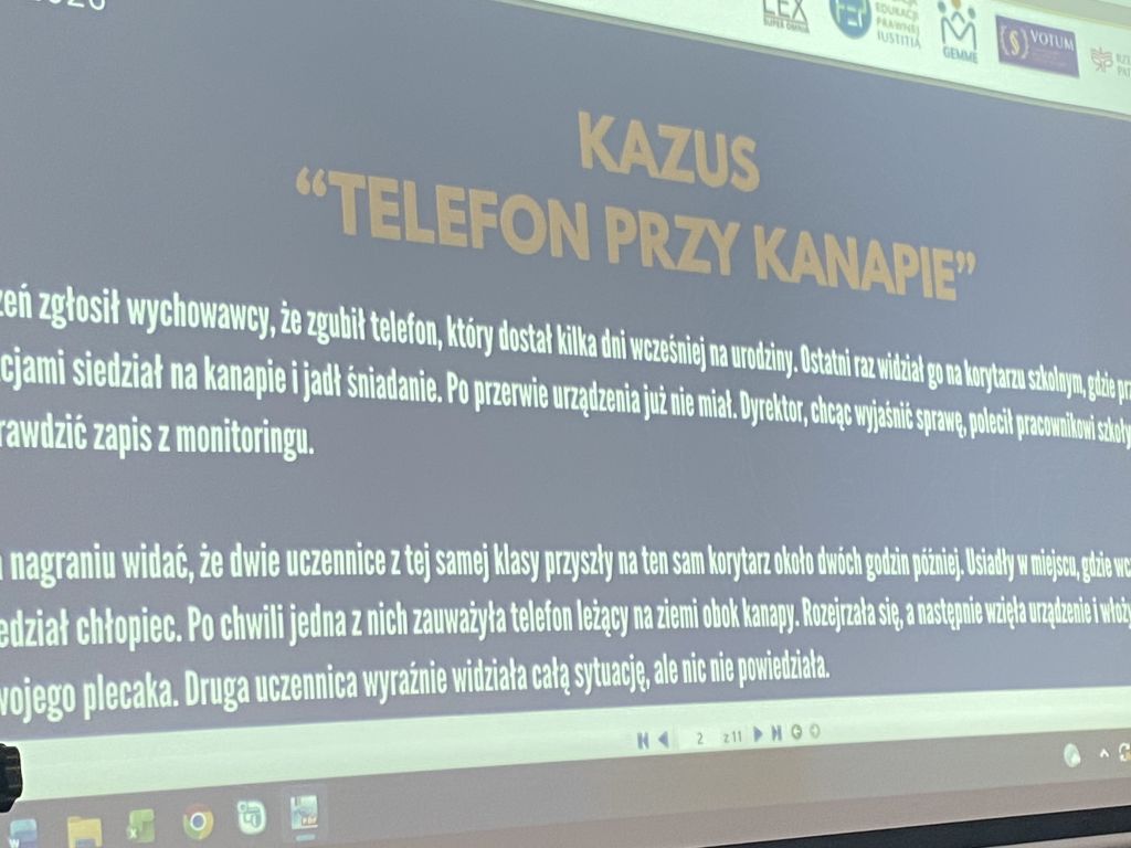Uczniowie zmierzyli się z kazusami prawnymi, wcielając się w rolę prawników i samodzielnie poszukując rozwiązań konkretnych problemów. Była to doskonała okazja do rozwijania umiejętności logicznego myślenia, argumentacji oraz pracy zespołowej.